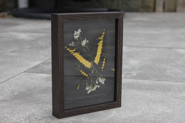 King Swallowtail butterfly with dried flowers in a medium black shadowbox